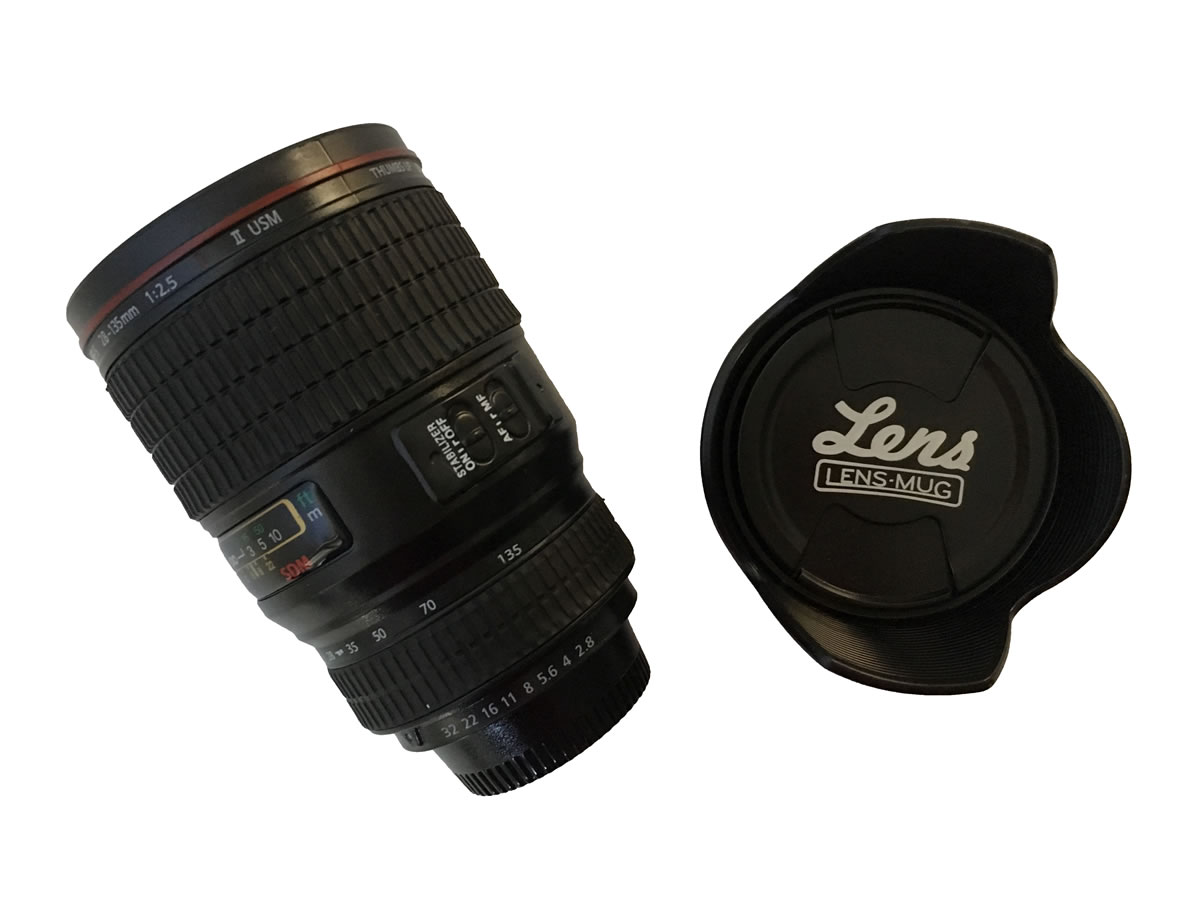 Realistic camera lens look and feel with detachable lens cover. Use the lens cap lid as a biscuit holder or to keep your drink hot.
